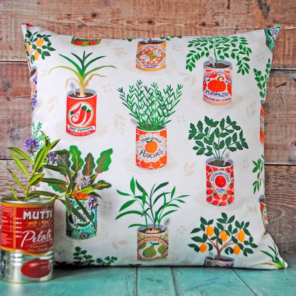 Vintage Tin Planter Cushion in cotton